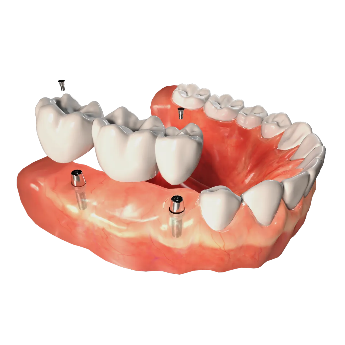 A multi-implant bridge is ideal for filling medium-sized gaps in your smile. Implant bridges are: